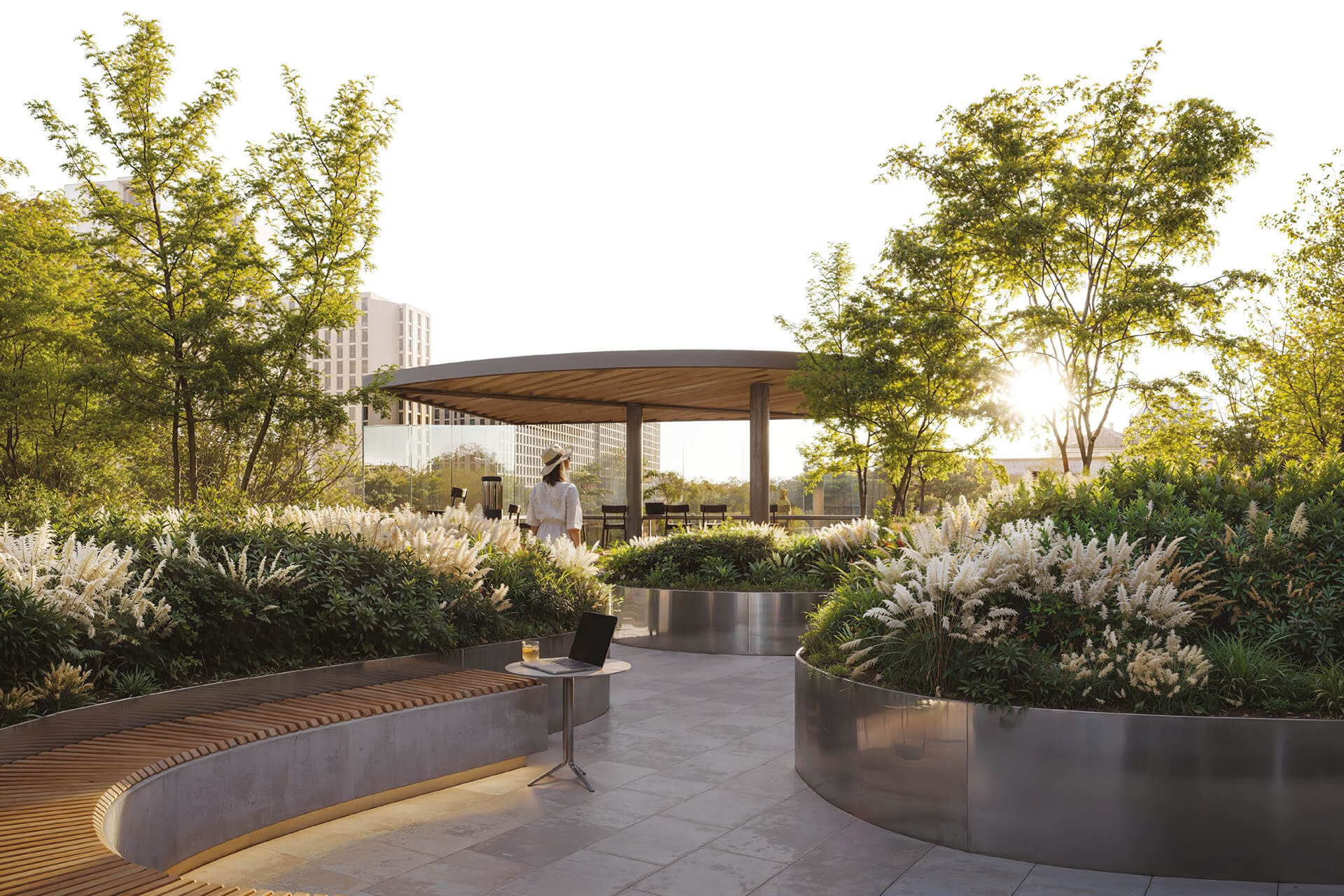 Благоустройство жилого комплекса «Ракурс» – это гармония природы и современного дизайна. На территории комплекса созданы озелененные дворы с деревьями, кустарниками и цветами, что создает ощущение жизни за городом. Многоуровневые детские площадки, спортивные зоны и зеленая крыша с террасой делают RAKURS уникальным местом для отдыха и прогулок.