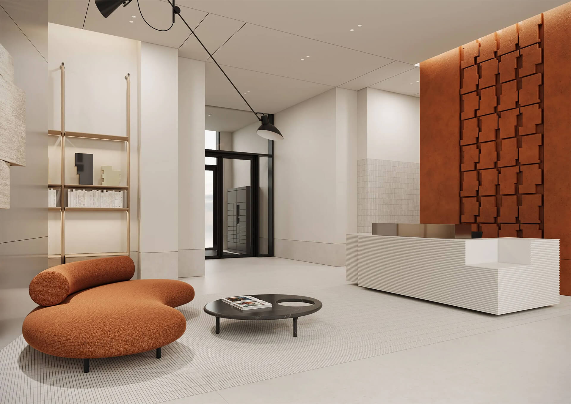 Лобби «Ракурса» – это не просто входная зона, а место, где начинается ваш день. Здесь вы можете встретиться с соседями, получить посылку или просто насладиться уютной атмосферой.